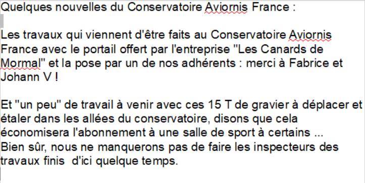 Travaux au Conservatoire Aviornis France mer, 07/05/2025 - 13:48 Connectez-vous ou inscrivez-vous pour publier un commentaire