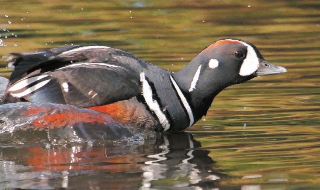 Au cours de l’hiver il faisait très froid; et comme je n’ai pas de forage, l’eau de l’étang était presque complètement gelée. Pourtant les canards arrivaient toujours à casser la glace pour accéder à l’eau. Les garrots arlequins sont des canards particulièrement costauds; ils ont bien passé l’hiver.