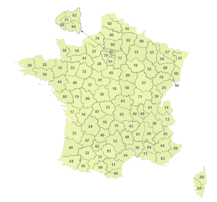 Mettez le pointeur de souris sur un département dans la liste ou dans la carte pour voir les coordonnées du délégué.
