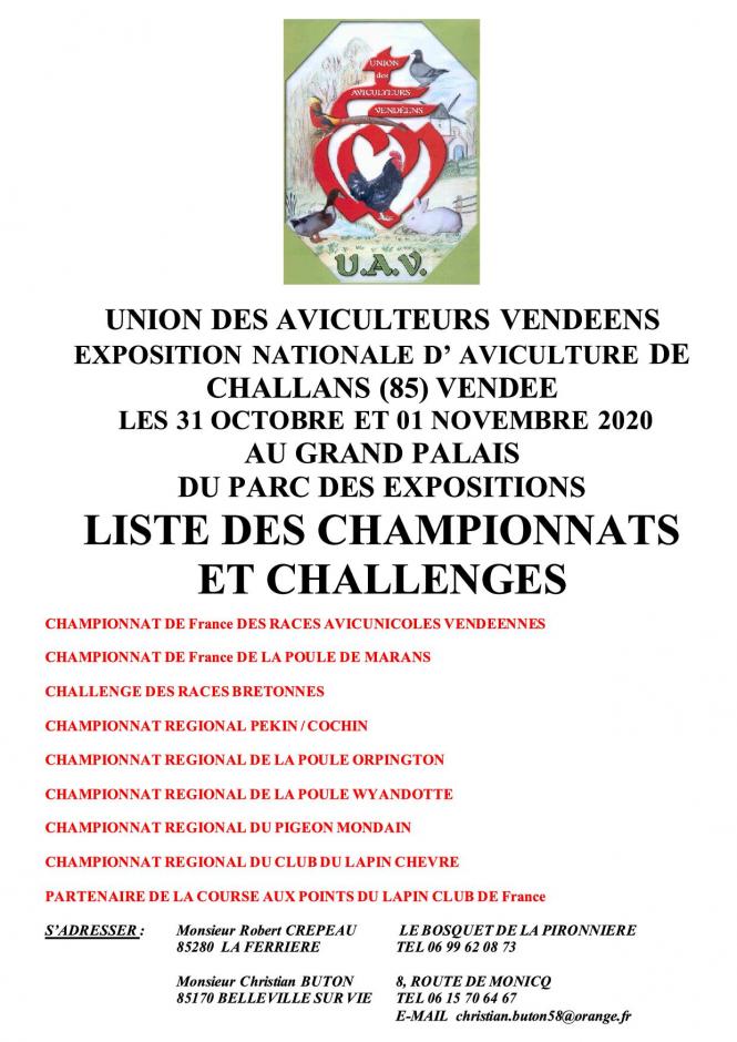 UNION DES AVICULTEURS VENDEENS EXPOSITION NATIONALE D’ AVICULTURE DE CHALLANS (85) VENDEE