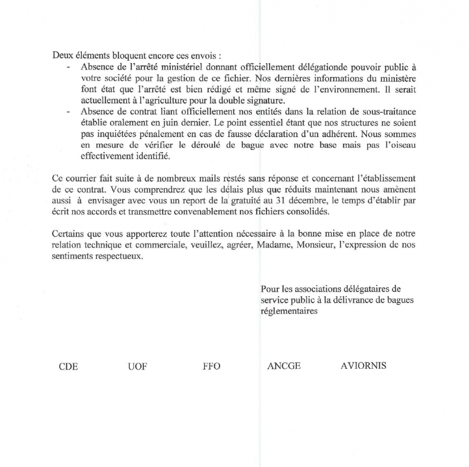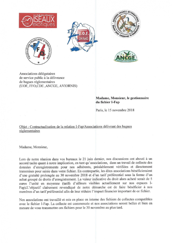 Vous trouverez ci-joint copie de la lettre envoyée à l'I-FAP signée par toutes les associations habilitées à distribuer des bagues