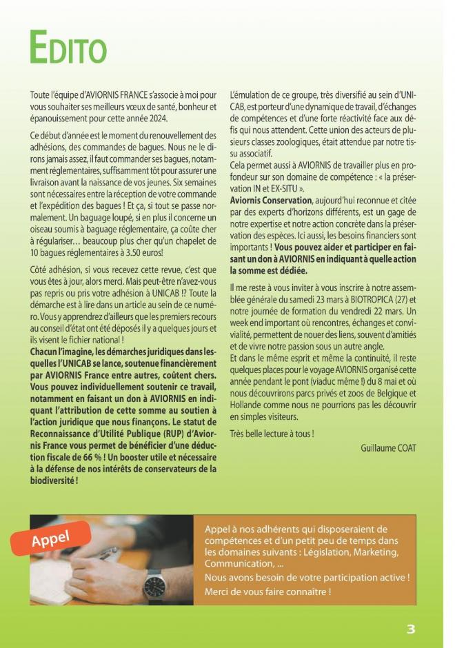 L'équipe de rédaction de l'association Aviornis France est heureuse de vous présenter la toute nouvelle et première revue de cette année 2024 : le numéro 297.